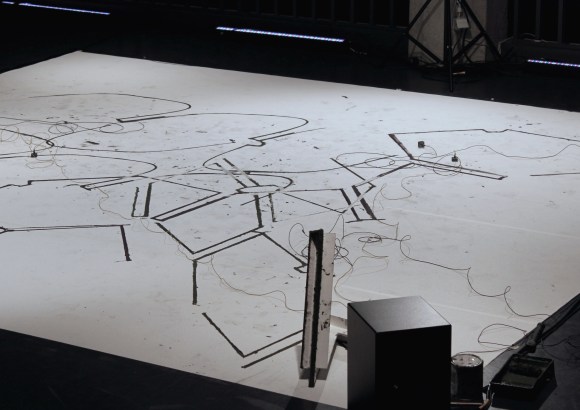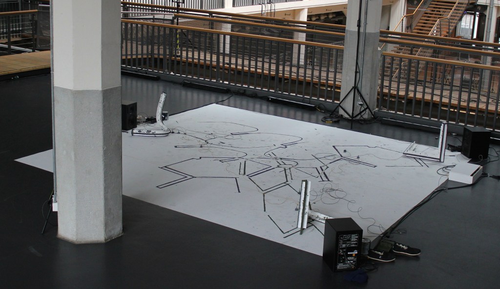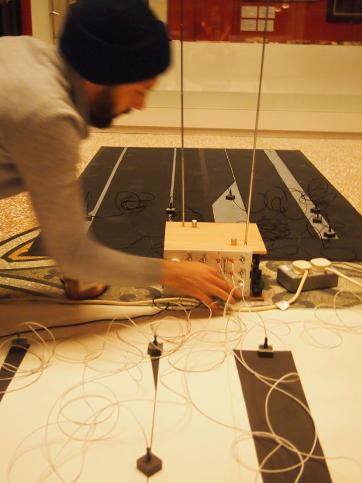 A performance at Musica Dispersa Experimental Sunday in London. Square wave electronics and right angle printing sculpture tool. First full size experiment with the new electronics.